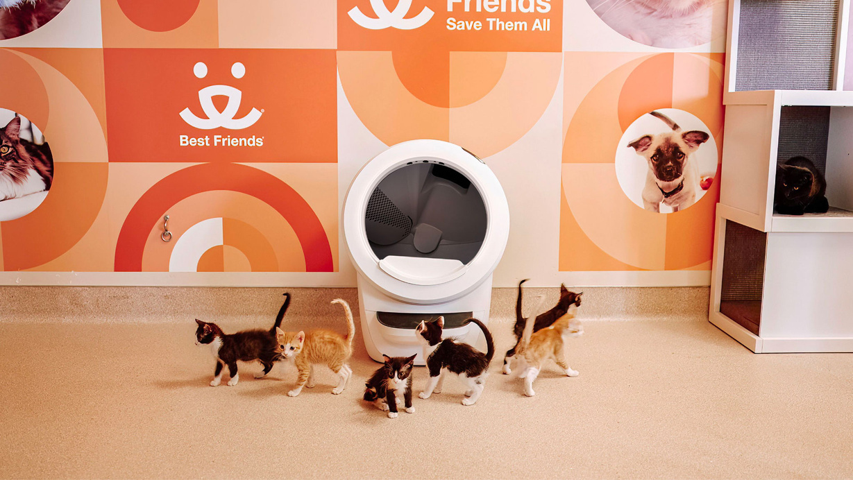 On one end of a cat, there’s unbearable cuteness: the button nose and elegant whiskers, bewitching eyes, and Cheshire grin. Then there’s the other end: the messier one whose products cat people begrudgingly accept as the price one pays for true love. But it’s this end that inspired Best Friends and Whisker to form a partnership to save more cats’ lives. Whisker has donated its flagship product — Litter-Robot® 4, a self-cleaning litter box — to Best Friends Animal Sanctuary’s Cat World and six lifesaving centers across the United States.